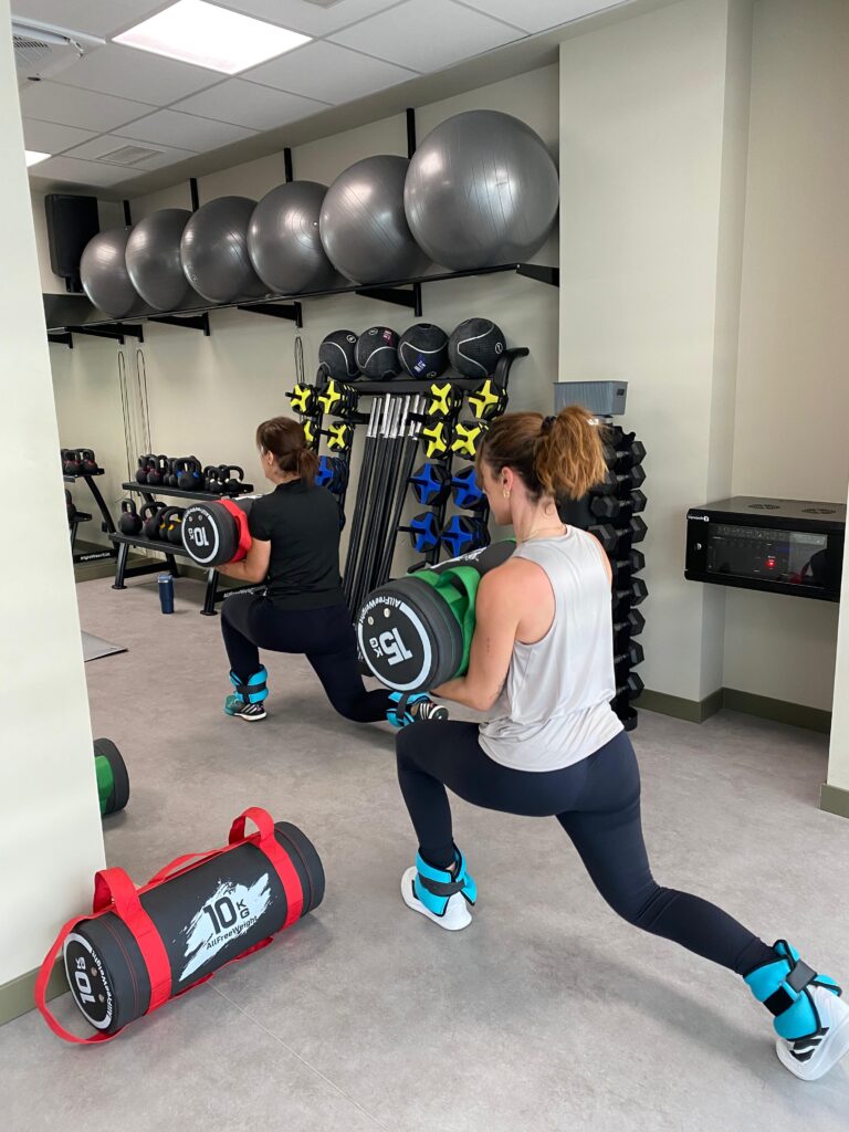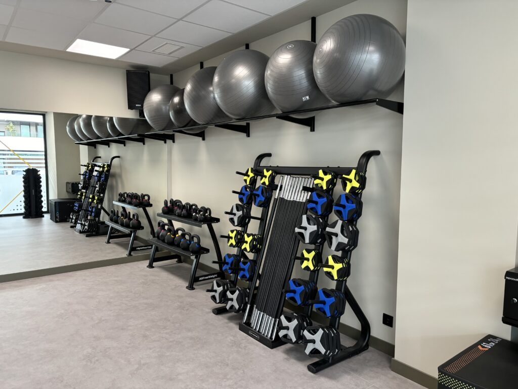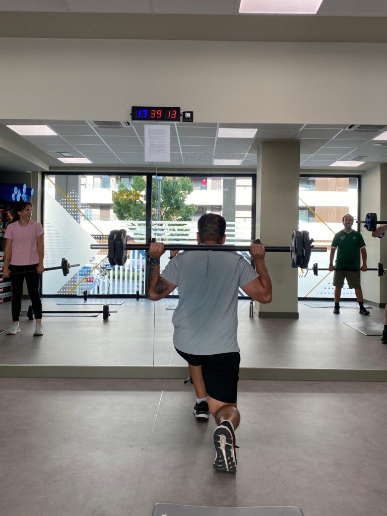 Entrenamiento dirigido en la sala de musculación en grupos de 4 personas.